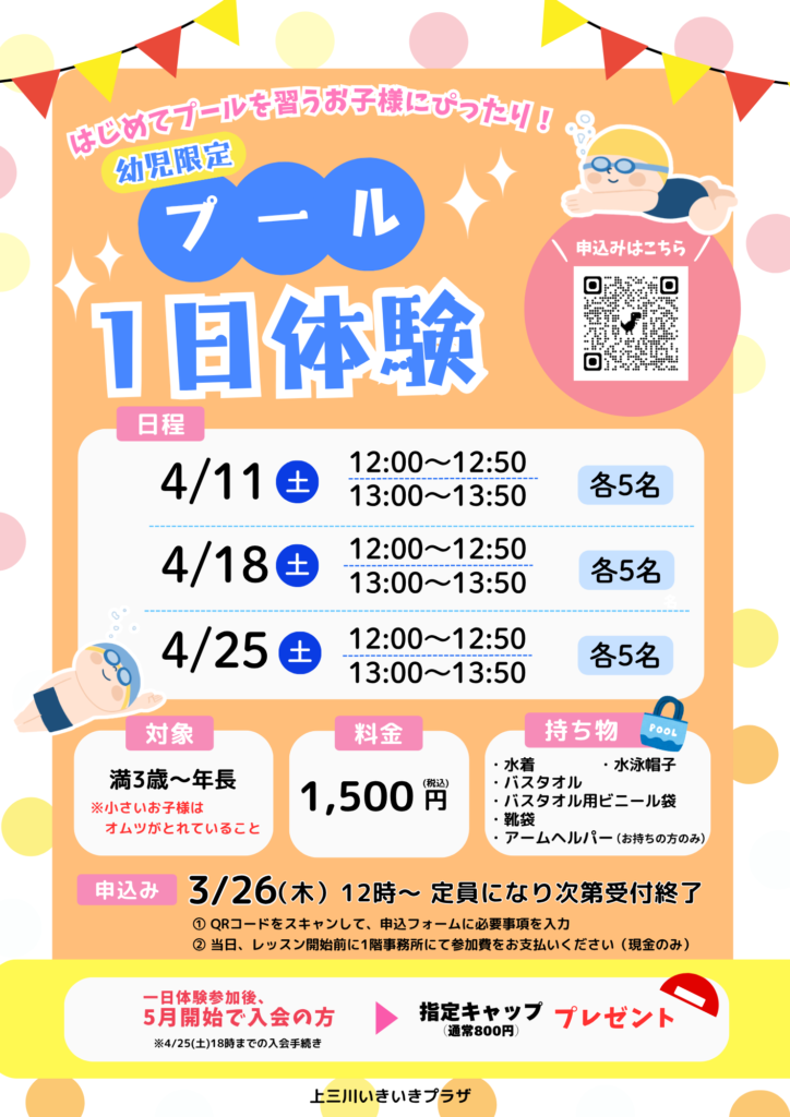 【申込み】3/26(木)12時~定員になり次第終了
